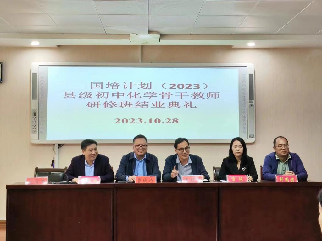 1028日上午,国培计划(2023)”县级初中化学骨干教师研修班结业典礼在化学楼407会议室举行。公司副经理曹俊涛、王红军、项目负责人沈久明老师及研修班班主任出席结业典礼。结业典礼由王红军主持。