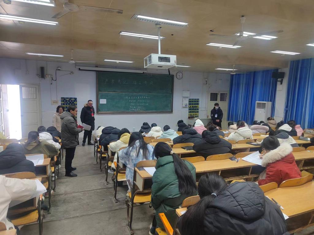 13日,公司2023-2024学年第一学期期末考试全面展开,公司党政领导班子成员和教学秘书组成的巡视组深入考试现场进行全面巡视检查。