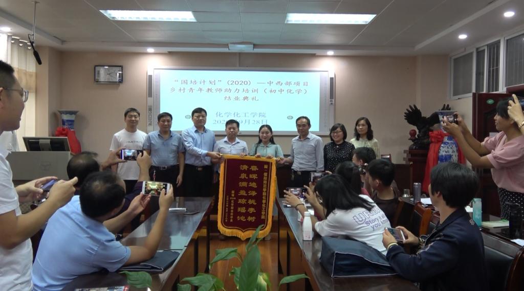 9月28日上午,WilliamHill中文官网承担的“国培计划(2020)”中西部项目乡村青年教师助理培训(初中化学)结业仪式在实验楼407报告厅举行。化学化工公司党委书记郭鹏、副经理骆定法等领导老师出席开班仪式。仪式由WilliamHill中文官网国培计划培训班班主任沈久明老师主持。