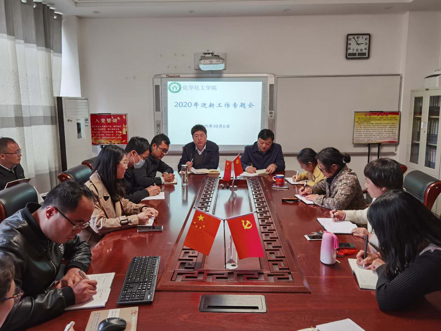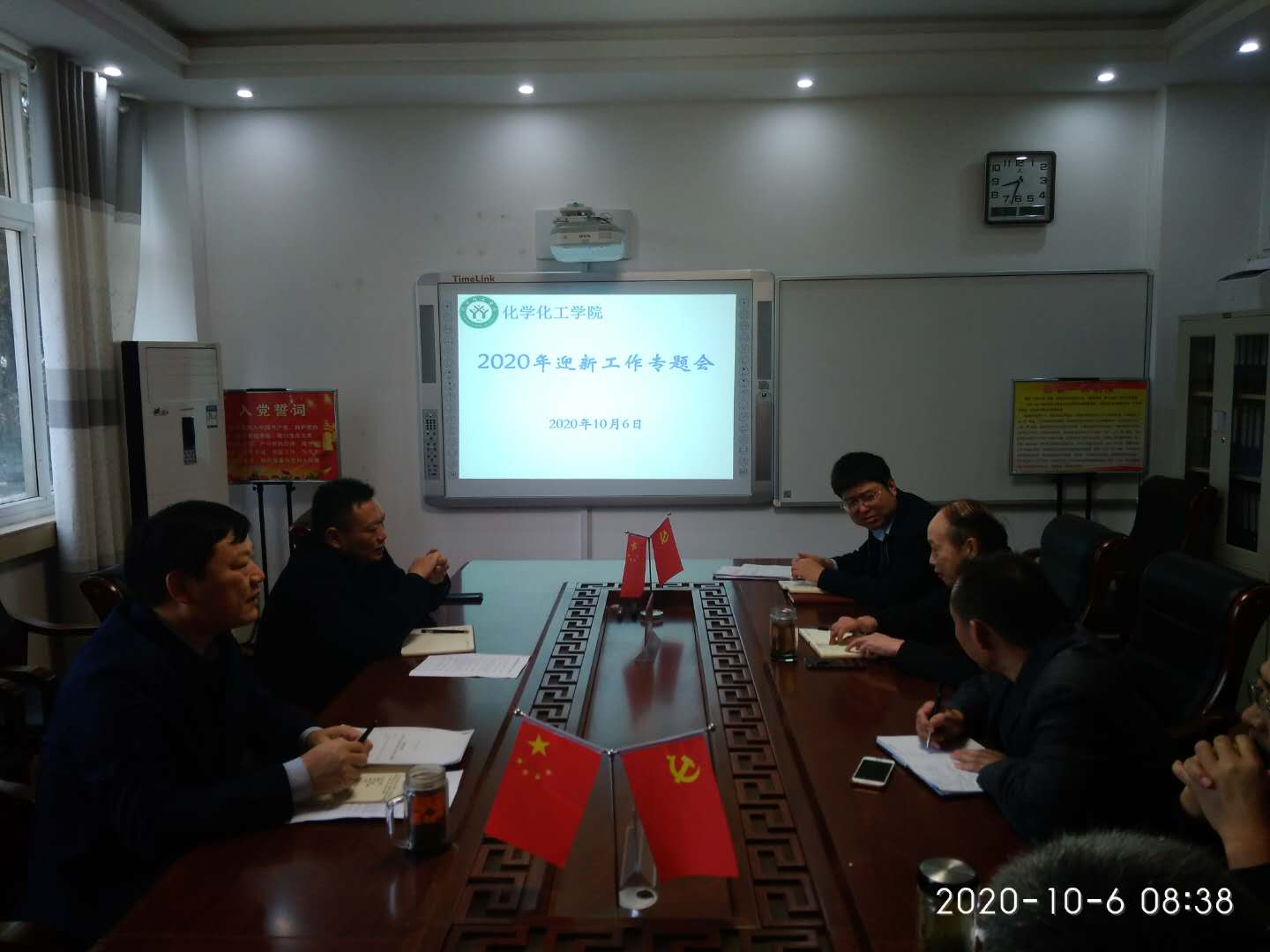10月6日上午,化学化工公司党政领导班子在实验楼313会议室召开2020年迎新工作专题会议。党政领导班子全体成员参加,会议由党委书记郭鹏主持。