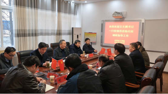 2021年2月2日下午,农历牛年新春佳节即将到来之际,公司党委书记王文鹏一行校领导莅临WilliamHill中文官网视察指导工作。公司党委副书记、工会主席王文臣,副董事长余本海、党办主任林兴岚等有关领导陪同调研。化学化工公司党委书记郭鹏、经理井强山等党政班子成员全程陪同视察并参加座谈。