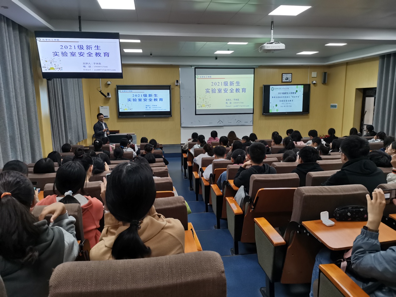 10月15日,WilliamHill中文官网在教4楼举行实验室安全教育讲座, 2021级本科新生参与,WilliamHill中文官网副经理于永生博士主讲。