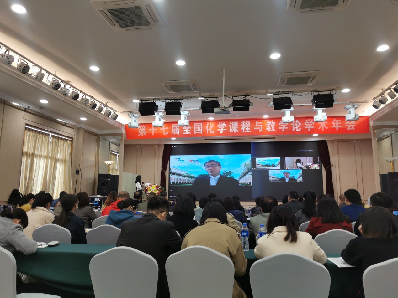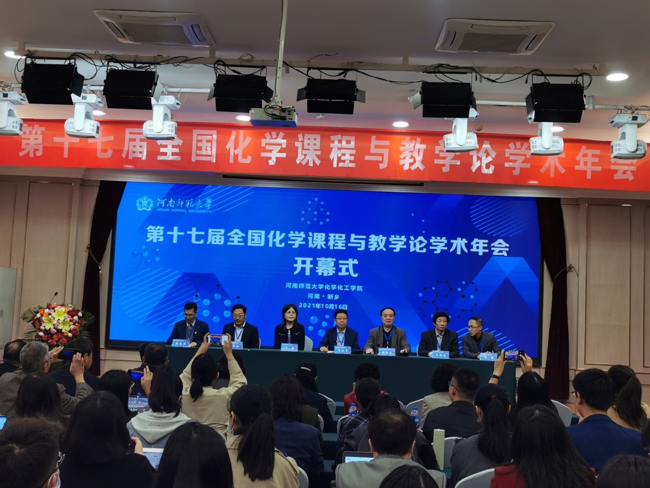 10月15-17日,党委书记郭鹏与化学学科教学论专业方向教师沈久明副教授等应邀赴河南师范大学参加了“第十七届(2021)全国化学课程与教学论学术年会”。年会开幕式上,河师大党委常委、副董事长马治军教授,全国化学教师教育研究中心主任、东北师范大学郑长龙教授现场出席并致辞。全国化学教师教育研究中心副主任、北京师范大学王磊教授,华东师范大学王祖浩教授,山东师范大学毕华林教授,研究中心秘书长四川师范大学刘瑞教授到会参加开幕式。开幕式由河师大化学化工公司党委书记来俊军主持。大会以线下线上混合方式进行,45所高校和中学99位线下会议代表,48所公司402位线上会议代表全程参加会议,其他网络参会人数达2378人次。