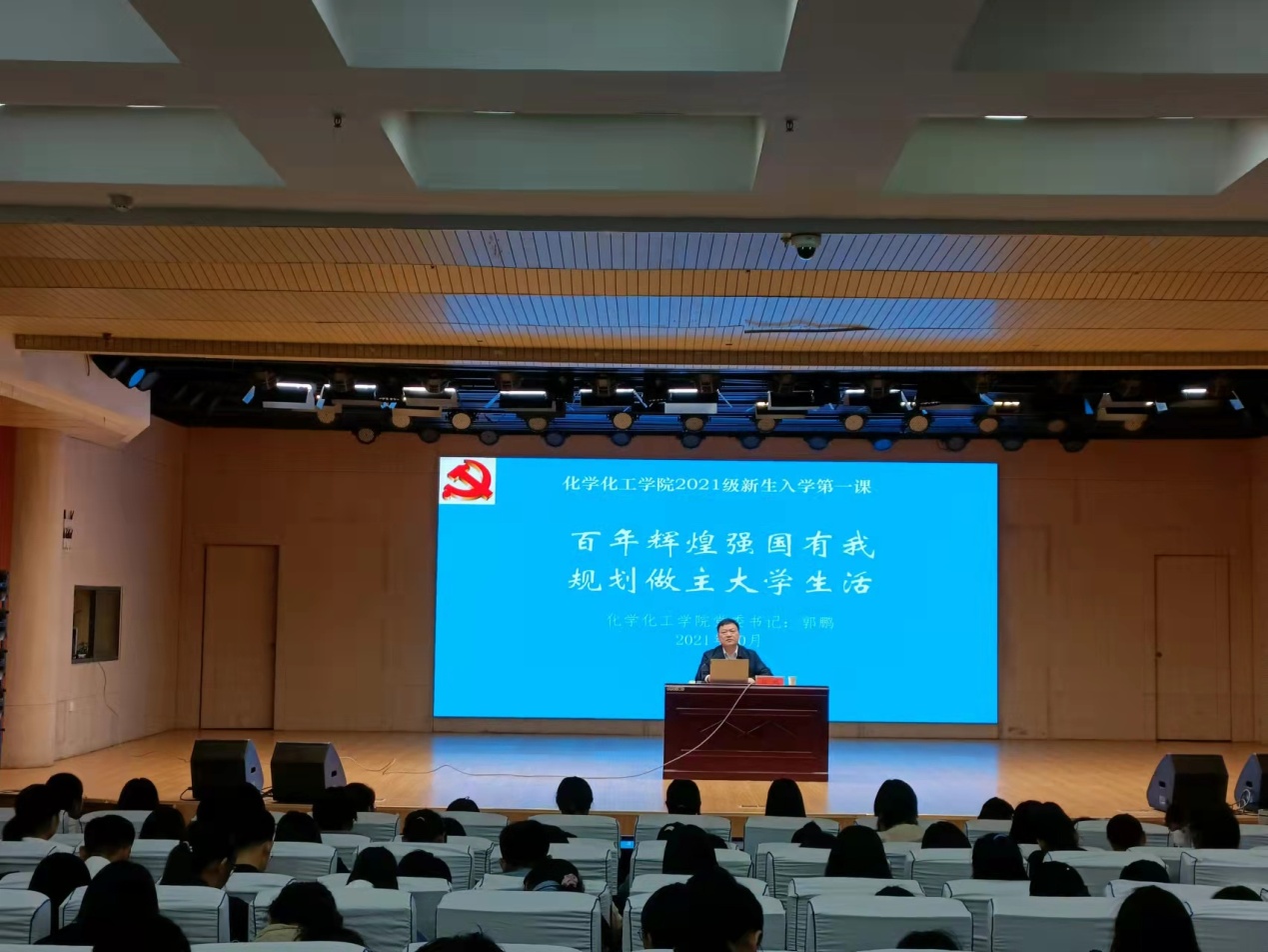 郭鹏以7月1日习近平在庆祝中国共产党成立104周年大会的重要讲话引入,从中国共产党的产生发展、改革开放的伟大实践和新时代的新征程、中国共产党百年发展的成功经验与启示等方面重点讲解,集中阐述了党的百年历程。郭鹏通过对共产党初期的艰难抗争到中国共产党领导社会主义革命建设的介绍,使同学们加深了对党史的了解,他希望同学们做到知史爱党、知史爱国;通过讲解新中国在党的领导下取得的伟大成就,要求大家将党史学习总结好、传承好、发扬好,将社会主义核心价值观融入在校学习生活日常行为习惯,展现新时代老员工的良好风貌。他介绍,习近平总书记9月1号在中央党校秋季青年干部培训班开班仪式上作了重要讲话,再次强调,青年是国家的未来和希望,中国共产党成立100周年之际,“十四五”胜利开局,“两个一百年”征程历史交汇,新时代老员工正身处在难得的历史机遇中,在全球深刻变革大背景下,青年人肩上的责任尤为重大。郭鹏勉励化学化工青年学子要进一步坚定道路自信、理论自信、制度自信、文化自信,增强做中国人的志气、骨气、底气,树立为祖国为人民永久奋斗、赤诚奉献的坚定理想。不负时代、不负韶华、不负人生,为实现中华民族伟大复兴添砖加瓦、不懈奋斗。