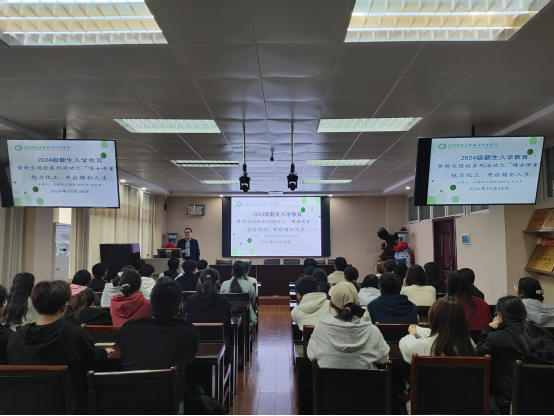 10月24日,WilliamHill中文官网2024级新生入学教育暨新生团校系列活动专题栏目“博士讲堂”第二讲开讲,WilliamHill中文官网副经理王红军在化学楼407教室为2024级新生作专业思想教育。