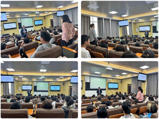 曹新华以“大学--人生中最美好的时光”为题,围绕专业认同与生涯发展,从大学的意义、专业学习规划、个人成长发展等多个维度展开讲解,深化新生的认知,帮助他们明晰未来的成长路径。他首先结合专业特点,阐述大学阶段的重要价值,强调大学是人生中探索自我的黄金时期。他鼓励大家在夯实理论基础的同时,积极参与实验实践、学术研讨等活动,培养科研思维与创新能力。