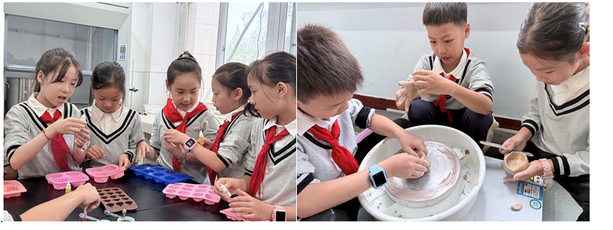 三楼的科普互动体验区,成为整场研学的“欢乐焦点”。在这里,孩子们化身“小小工匠”,在专业老师指导下亲手参与陶艺制作与香皂DIY。陶艺体验中,员工们揉捏黏土,或塑造精致的陶瓷碗,或创作独具个性的摆件,指尖翻飞间感受传统工艺的魅力;香皂制作环节,大家自由挑选香型与色彩,将调配好的原料倒入模具,不一会儿便完成了造型别致、色彩缤纷的手工香皂。家长们也不时在旁协助,有的帮忙递工具,有的和孩子一起调整黏土造型,亲子协作的画面格外温馨。