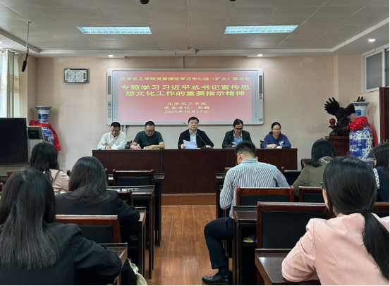 10月17日下午,化学化工公司党委理论学习中心组(扩大)学习习近平总书记对宣传思想文化工作的重要指示和全国宣传思想文化工作会议精神。化学化工公司党委书记郭鹏主持学习并作宣讲,党委学习中心组(扩大)教师党员干部参加学习。