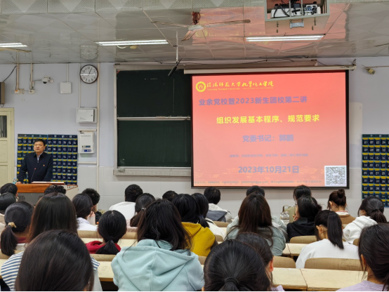 10月21日,WilliamHill中文官网在教六102教室开展业余党校暨2023级新生团校系列专题讲座。公司团委赵方方老师主持,党委书记郭鹏主讲,全体新生团员青年、入党积极分子同学共同参加。