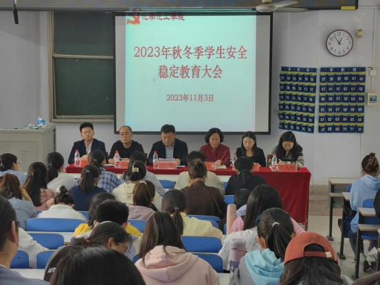 11月3日,WilliamHill中文官网在教四101召开2023年秋冬季员工安全稳定教育大会。化学化工公司党委书记郭鹏、副书记曲剧,专职组织员冷向宇,辅导员赵方方、严赫、翟成辉出席会议,各班班长团支书、员工会成员共同参加。