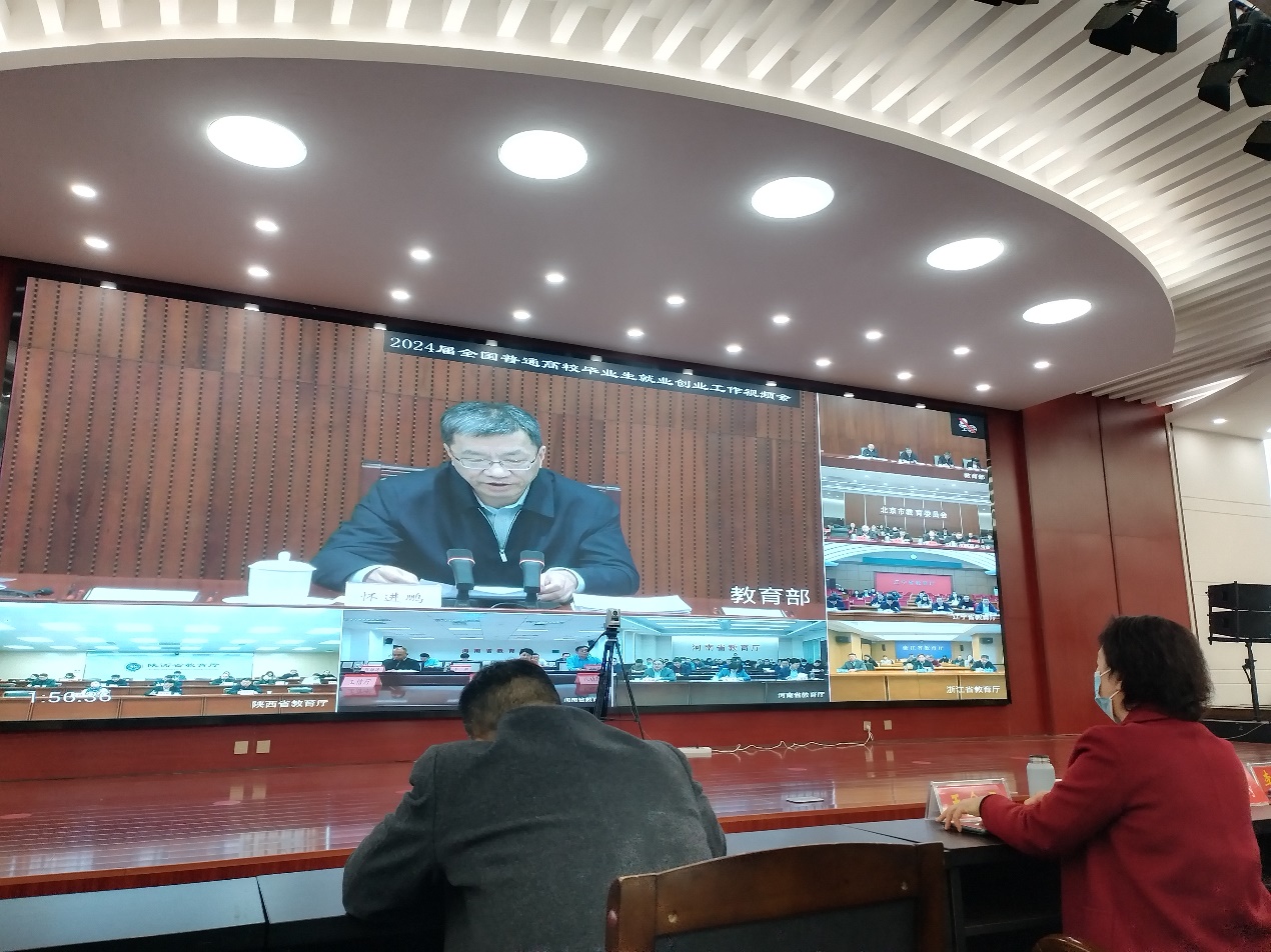 视频会上,5个省市级教育主管部门、高校、企业代表作交流发言,3位部长分别作了讲话。会议指出,2024届高校毕业生规模预计1179万人,同比增加21万人,当前就业形势依然严峻复杂。各地各高校要进一步提高政治站位,把促进高校毕业生高质量充分就业摆在教育强国建设的战略高度通盘考虑,把做好高校毕业生就业工作作为推动教育评价改革的重要抓手,把优化高校毕业生就业服务作为构建优质均衡基本公共教育服务体系的重大任务,把确保高校毕业生就业大局稳定作为稳就业工作的重中之重,准确把握当前高校毕业生就业工作面临的形势,聚焦关键环节,多措并举促进2024届高校毕业生更加充分更高质量就业。