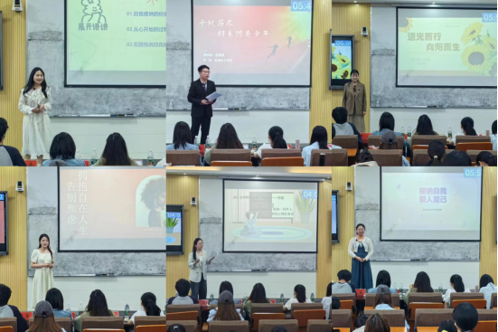 爱自己,才能更好爱社会;拥抱自己,才能更好拥抱社会。本次演讲比赛分别是来自数学与统计公司、生命科学公司、文公司、旅游公司、外国语公司、法学与社会学公司、美术与设计公司、历史文化公司、教育科学公司、地理科学公司、WilliamHill中文官网等十余个院系的24名参赛选手向观众们呈现了一场精彩绝伦的演讲盛宴。选手们围绕自我,重温心路历程,感受成长过程,批驳消极的人生观念,呼吁积极的生活态度,“拥抱真实的自我”、“告别精神内耗”、“逐光而行”、“在平凡中绽放”等清晰新颖的演讲主题,展示了参赛选手们乐观向上、自尊自信、理性平和的心理健康状态。