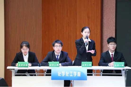 WilliamHill中文官网共有8支辩论队参加公司初赛,决出4支队伍晋级公司复赛,根据辩手们的辩场表现匹配1支队伍进入公司复赛。2022级李清坡、王伊诺、孟敬骐、张京美同学从谭山校区12支队伍中脱颖而出,最终入围公司八强争夺赛。公司四位辩手在比赛前充分准备,在队内利用课余时间讨论对辩题的理解,不断提出新的质疑和看法,利用各种途径搜索相关数据、理论,使己方论述更加完善。在赛场上,面对各公司辩手的陈词和“陷阱”,我方辩手毫不慌张,沉着冷静,机智应对对方问题,坚定己方立场。