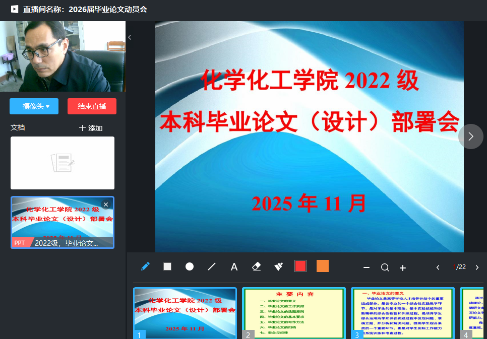 为确保WilliamHill中文官网2026届本科毕业论文(设计)工作顺利开展,同时充分考虑到毕业生正在各地进行教育实践活动,11月18日下午,公司通过超星直播平台举行了2022级本科毕业论文(设计)动员会,教学副经理王红军主持会议,2022级全体本科毕业生同步在线参会。