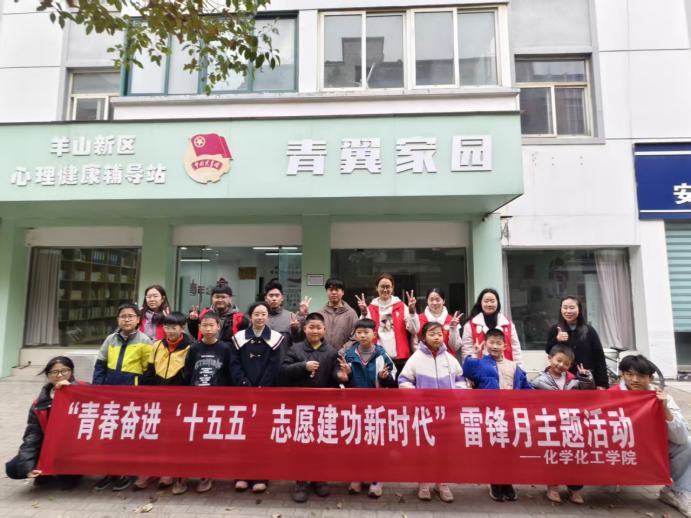 校地联动,传递志愿温情。“志愿红”深入社区,发挥专业特长,用趣味实验点亮孩子们的化学梦;同步推进常态化公益心理服务,用陪伴筑牢青春心理健康防线。
