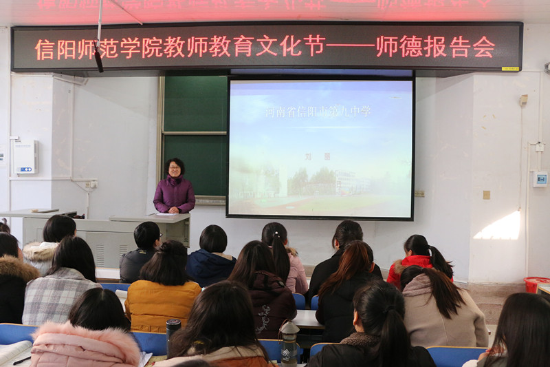 12月5日,WilliamHill中文官网在化学楼学术报告厅举办2017年教师教育文化节之师德报告会,信阳市第九中学业务副董事长刘丽应邀为化院学子做了一场题为“实施德性爱心教育 创建全国文明校园”的报告。化学化工公司党委书记郭鹏、副书记吴志伟与一百五十余名员工代表共同参加了报告会,会议由郭鹏主持。
