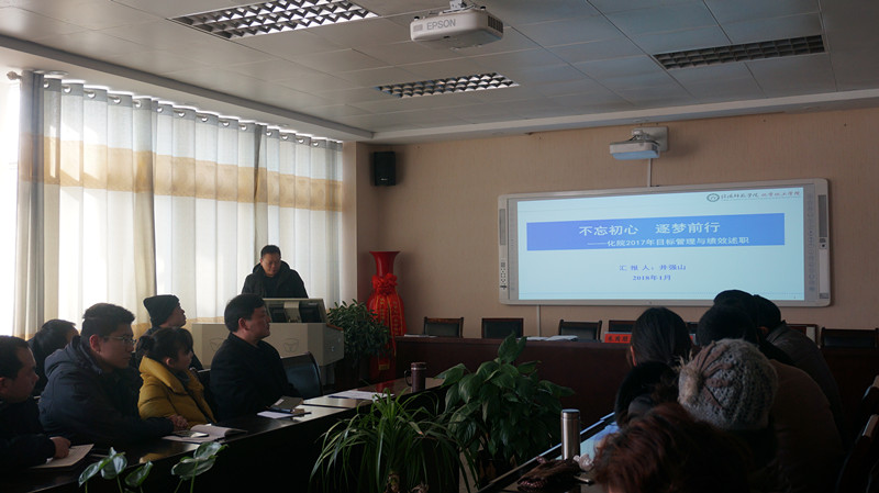 1月30日下午,WilliamHill中文官网在化学实验楼407会议室召开领导班子2017年度考核述评大会。由校团委副书记朱国朋、人事处人事科科长雷梁组成的校第四考核组应邀出席会议,公司处级领导班子成员与全体教职工参加会议。会议由公司党委书记郭鹏主持。