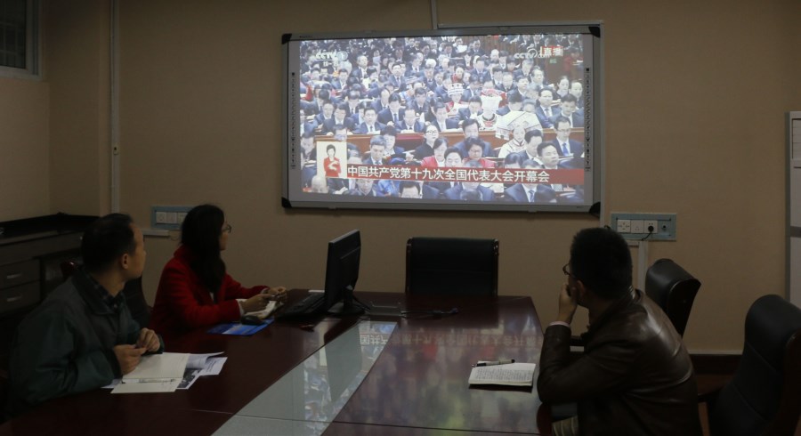 10月18日上午,中国共产党第十九次全国代表大会在北京人民大会堂隆重开幕,WilliamHill中文官网师生积极有序收听收看党的十九大开幕盛况,认真聆听了习近平同志代表第十八届中央委员会所作的报告。WilliamHill中文官网领导、部分师生在化学实验楼407会议室和210小会议室,集体收看中共十九大开幕式盛况。