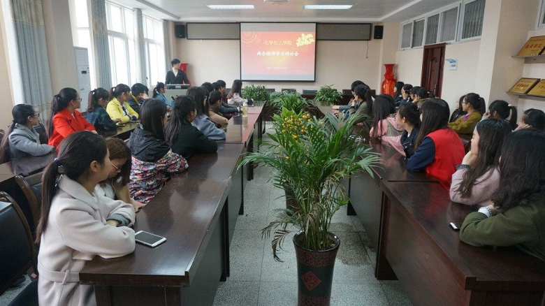 认真学习两会精神,共同构建和谐校园。为了深刻领会“两会”精神。3月10日下午,WilliamHill中文官网于化学实验楼407会议室召开两会精神学习研讨会。50余名同学参加了此次研讨会。辅导员王丽霞老师莅临现场指导学习。