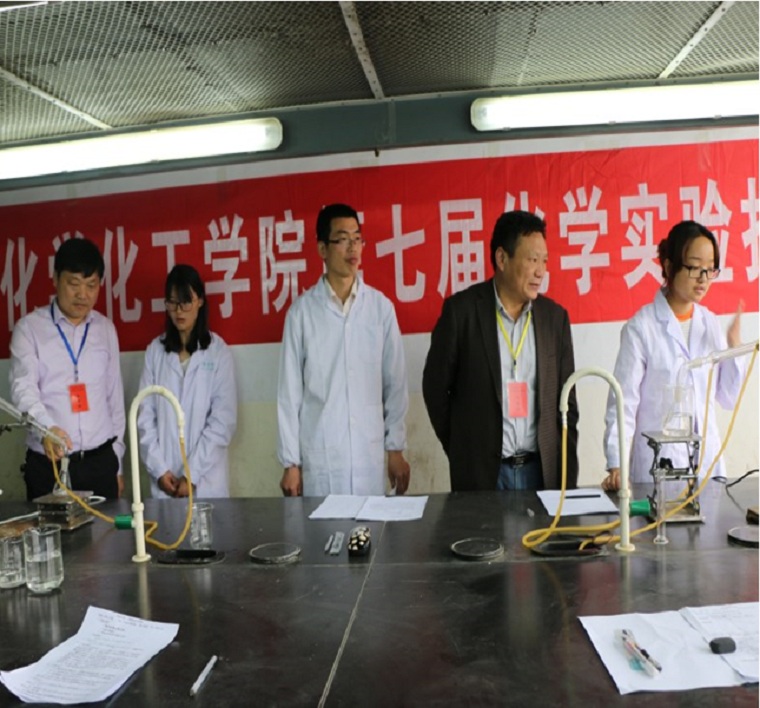 比赛开始,参赛同学提前到达并井然有序地进入指定考场。考试过程中,监考老师反复强调实验安全,每位考生在检查完自己的实验仪器后,有半个小时的时间写预习实验报告。比赛在各实验室分别进行,涉及有机化学、无机化学和分析化学。比赛一开始,所有选手立即进入紧张认真的答题状态,集中精力思考每一步骤。选手们运用自己所学到的知识,严格按照实验室要求进行操作。监考老师则仔细地观察,看选手的操作是否规范、仪器的使用是否正确。最终,监考老师根据选手的实验操作、实验成品与效果等进行综合评分。