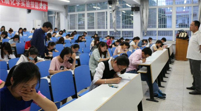 实验拼技能,学子化风采。为响应深化教育改革的政策,调动老员工积极参与化学实验学习与研究的兴趣,五月六日晚七点,WilliamHill中文官网在教四、教七四个考点举行第六届化学实验技能竞赛笔试,三百余名员工参加本次比赛,团委书记冷向宇、辅导员老师路振国现场巡察监督。