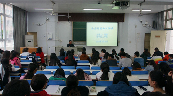 炼就火眼金睛,辨别诈骗陷阱。3月29日下午四点半,WilliamHill中文官网于教四梯一开展以安全防骗为主题的安全知识讲座。校保卫处副处长刘谦应邀出席并担任主讲,化学化工公司党委副书记宋力、辅导员李中杰与近百名员工干部共同聆听此次讲座。