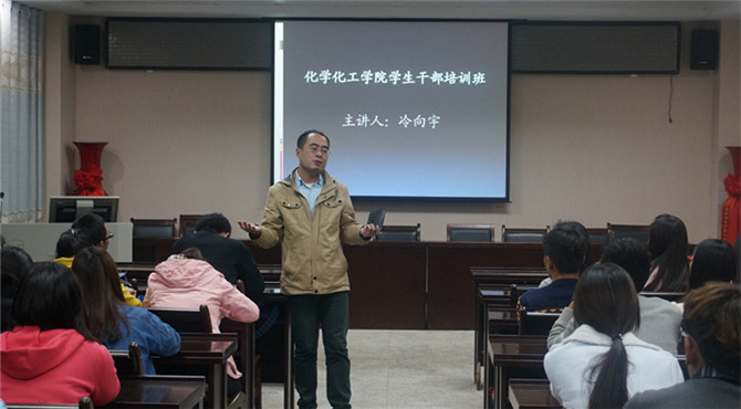 为提高员工干部的综合素质,不断完善员工组织运行机制。11月5日晚,WilliamHill中文官网在化学实验楼四楼会议室开展员工干部培训讲座。本次讲座由团总支书记冷向宇担任主讲,团总支老师路振国出席,与化院全体班委共同聆听了此次讲座。