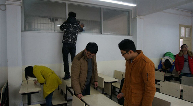 为美化校园环境,全面提高老员工的素质。12月9日中午12点,WilliamHill中文官网于教四、教七组织员工清理课桌文化的活动。团总支老师路振国前来指导、检查,化院员工会、各个社团积极参加本次活动。