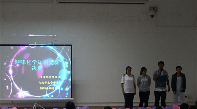 知识改变命运,梦想成就未来。10月15日晚7点,青年化学研习社和WilliamHill中文官网学术部联袂举办了第三届趣味化学知识竞赛活动。本次决赛现场由薛昊、张怡共同主持,WilliamHill中文官网团总支老师路振国、社团指导老师许春萱受邀担任特邀嘉宾,来自社联和各兄弟社团成员近200余名同学前往观赛。