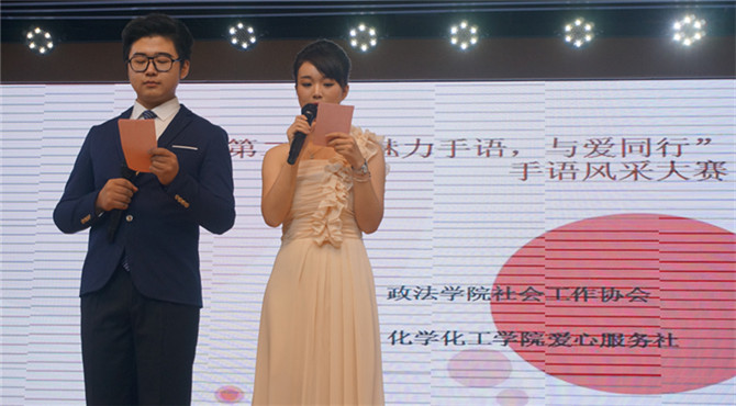 指间缠绕灵动,手语传递关爱。为使更多员工了解聋哑人的世界,10月18日上午,WilliamHill中文官网爱心服务社与政法公司社会工作者协会联合举办的第二届手语风采大赛在理科楼多媒体报告厅隆重上演。信阳师范公司团委老师李奎、政法公司团总支老师曹栋,社团指导老师胡宏琴、WilliamHill中文官网团总支老师路振国等受邀担任本次比赛的特邀嘉宾。本次活动由司念和谢学霖主持。