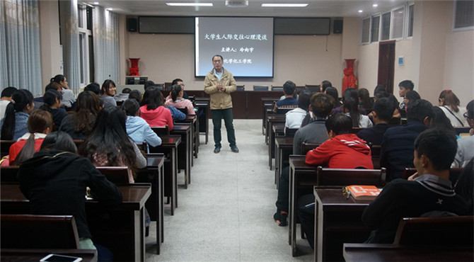 讲座伊始,冷向宇向同学们问好并且做了自我介绍,让在场同学对他有了一定的认识及了解。接着,他强调,人际交往是大学四年中一门非常重要的课程,并围绕着“学知识”“长见识”“交朋友”三个方面做了重要诠释。他指出,四年时间里同学们在大学中要尽可能的多学习知识,通过人际交往去了解更多的东西从而来开阔自己的视野。为了让在场同学更深刻的了解人际交往的含义,冷老师又为在场同学举了许多生动有趣的事例。启发同学们应该树立科学的人生观,形成正确的自我观,有效的保持自己良好的心境,重塑人际交往理念,培养健康的生活习惯和业余爱好。随后, 他讲到了老员工人际交往过程中常见的问题以及应对策略。他强调,老员工活和学习中,同学相处等方面出现的问题比较常见。而解决这一问题的关键,主要是要有包容的态度。他特别指出,同学相处一定要做到相互宽容,提高自己的应变能力,去开放自己。这样同学们才能更好的实现自己的个人目标,从而使自己的老员工活更加有意义。最后是现场同学与老师的互动环节。同学们提出各种各样的问题,老师认真聆听,仔细思考,随后以幽默的方式为我们做了精彩的解答。