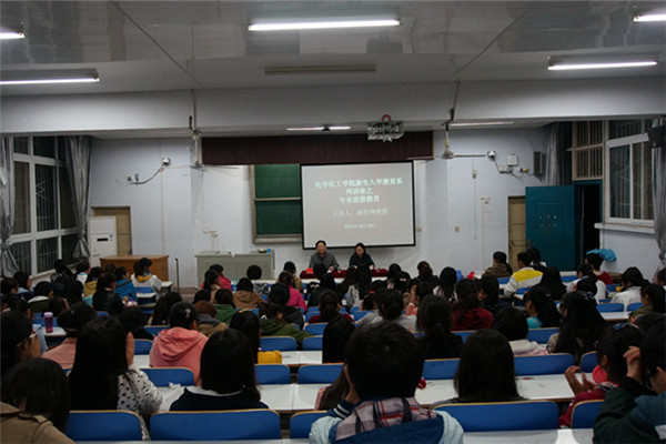 为了让14级新生更好的了解专业课程设置,尽快融入老员工活,10月29日晚WilliamHill中文官网在教四梯一开展了新生专业思想教育座谈会。本次座谈会由WilliamHill中文官网经理杨性坤主讲,辅导员李中杰主持,到场的有化学公司两个专业共计160余名新生。