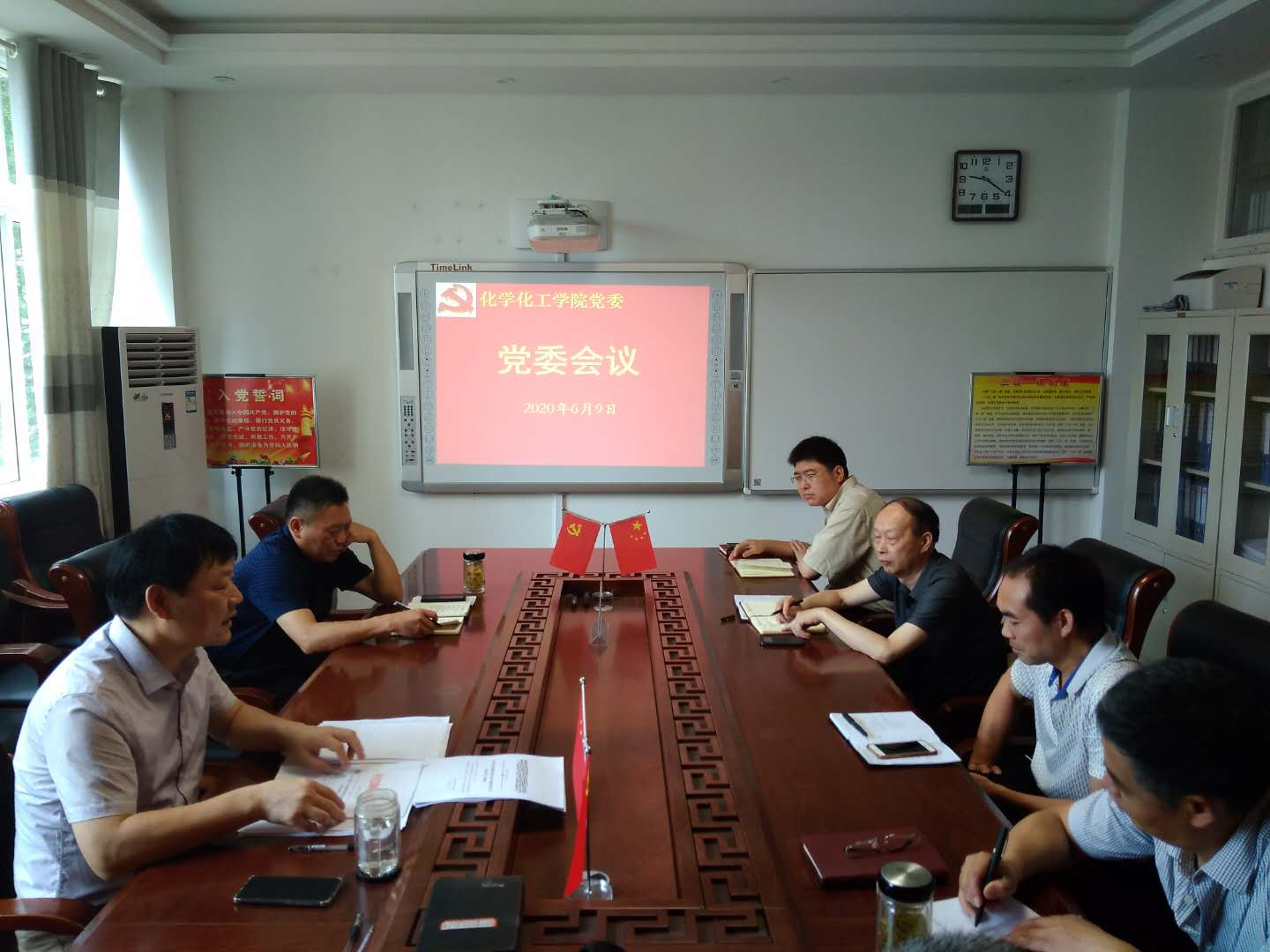 6月9日,化学化工公司党委在化学实验楼“党员之家”313会议室召开学习贯彻公司创建全国文明校园动员大会精神专题会议。党委书记郭鹏、经理井强山等班子成员,行政(思政)支部书记、办公室主任孙俊永,员工一支部书记、专职组织员冷向宇等参加了会议。会议由郭鹏主持。
