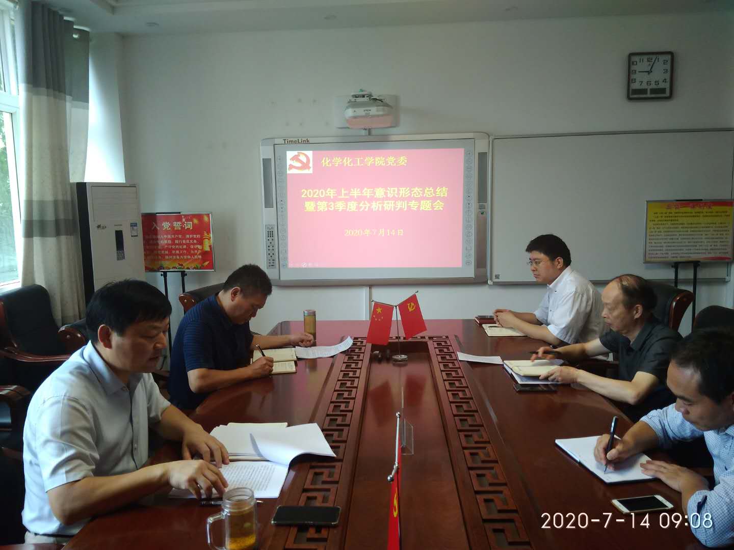 郭鹏再次领学《关于信阳师范公司党委(党总支、直属党支部)意识形态工作责任制实施细则的通知》《分党委(党总支、直属党支部)落实意识形态工作责任制考核办法(试行)》等文件,并从意识形态工作总体情况、存在问题和下一步工作打算等方面进行梳理小结,对2020年上半年意识形态工作进行回顾总结,与会人员进行深入细致的讨论,并对公司本年度第3季度意识形态工作重点任务进行分析研判,特别是针对暑假期间师生各领域意识形态工作、安全稳定工作进行了认真分析和研究部署。