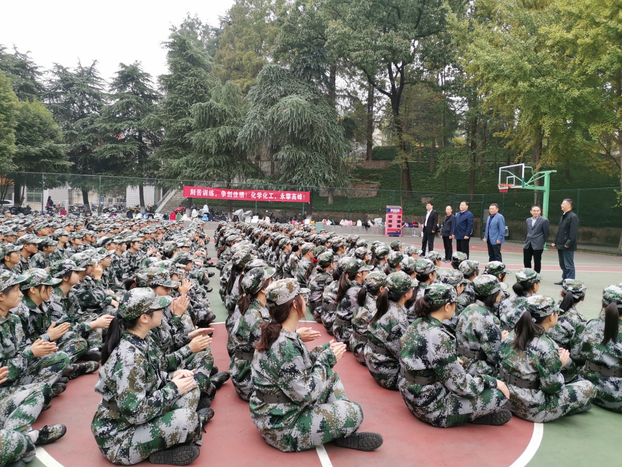随后,郭鹏、井强山一行慰问在场的军训新生。在耐心询问了同学们的军训情况后,郭鹏代表党政班子慰问团成员作了简短讲话。他告诉同学们,“军训是老员工接受锻炼、提高自身综合素质、展现自我的一个平台”,鼓励同学们将军训的磨砺内化成努力奋斗、更上层楼的不竭动力,为今后的学习生活奠定坚实基础。要用心、用情、用力大声喊出:“厚德崇实、善学敏行”“化学化工、勇攀高峰”“化学化工、谁与争锋”的响亮口号。