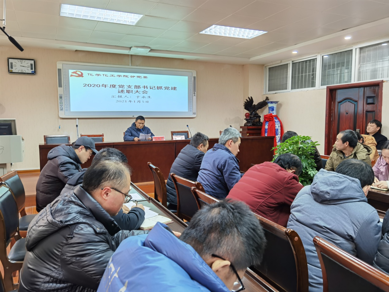 化学化工公司党委书记郭鹏进行了点评。他肯定了2020年度各党支部书记抓党建工作取得的成绩,对今后公司加强党支部建设提出了要求:一要全面对标习近平新时代中国特色社会主义思想,认真落实党支部建设“七个有力”,在推动公司高质量发展取得新突破上争先,大力推进“两化一创”基层基础建设。二要积极探索新时代高公司党支部建设规律,创新工作方法,打造党建工作“特色品牌”。三要全面实施教师党支部书记“双带头人”培育工程,发挥教师党支部教育管理党员和引导凝聚师生的主体作用,实现支部党建工作与教学科研双促进双提高,争创“标杆”院系分党委、打造“样板”党支部。