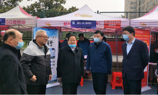 3月20日,由中共信阳市委、信阳市人民政府主办,信阳师范公司承办的“2021年信阳市招才引智专项活动”——信阳师范公司2021届毕业生专场招聘会在公司篮球场举行。公司积极组织学子参加招聘会,公司党委书记郭鹏、副经理归风铁、党委副书记吴志伟等党政领导班子成员莅临现场指导,与用人单位以及应届毕业生进行沟通交流。