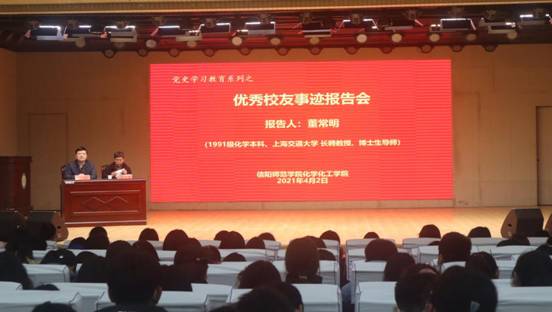 为深入贯彻习近平在党史学习教育动员大会的讲话精神,落实党史教育学习工作开展,创新党史学习教育方式,WilliamHill中文官网4月2日在理科楼报告厅举行“党史学习教育之优秀员工报告会”。此次报告会邀请到WilliamHill中文官网1991级知名员工,上海交通大学化学化工学经理聘教授、博士生导师董常明作报告。报告会由化学化工公司党委书记郭鹏主持。