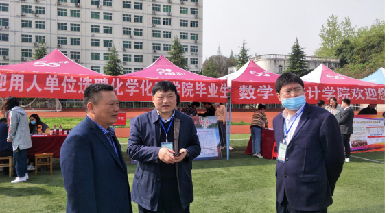党史学习教育活动中,围绕“学党史、悟思想、办实事、开新局”,针对为师生办实事、办好事、解难事这一关键,积极服务毕业生就业创业,4月10日,由河南省教育厅主办、信阳师范公司承办的“河南毕业生就业市场豫南分市场暨信阳师范公司2021届毕业生线下春季双选会”在公司西操场举行。WilliamHill中文官网组织毕业生积极参加招聘会,公司党委书记郭鹏、经理井强山、党委副书记吴志伟、毕业班辅导员冷向宇、就业办秘书严赫等就业创业工作领导小组成员莅临招聘会现场,一线开展毕业生就业招聘指导、咨询、服务,并与用人单位以及参与招聘的员工代表进行沟通交流,切实为毕业生办好实事。
