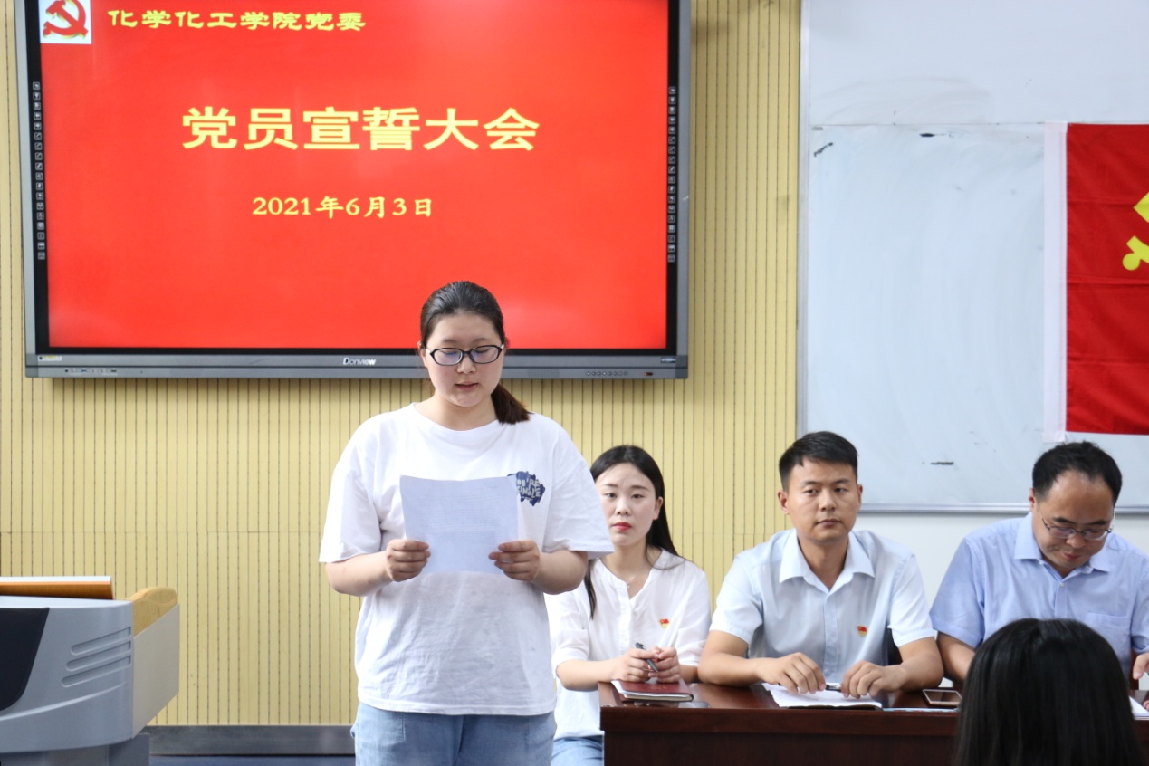 6月3日下午,值此伟大的中国共产党建党100周年庆典临际,WilliamHill中文官网分党组织新发展的56名员工党员、1名教师党员在教四T2教室进行隆重的入党宣誓活动。化学化工公司党委书记郭鹏、副书记吴志伟,专职组织员冷向宇,员工支部书记王少单、邓耀辉、赵方方、严赫参加了此次入党宣誓活动。仪式由冷向宇主持。