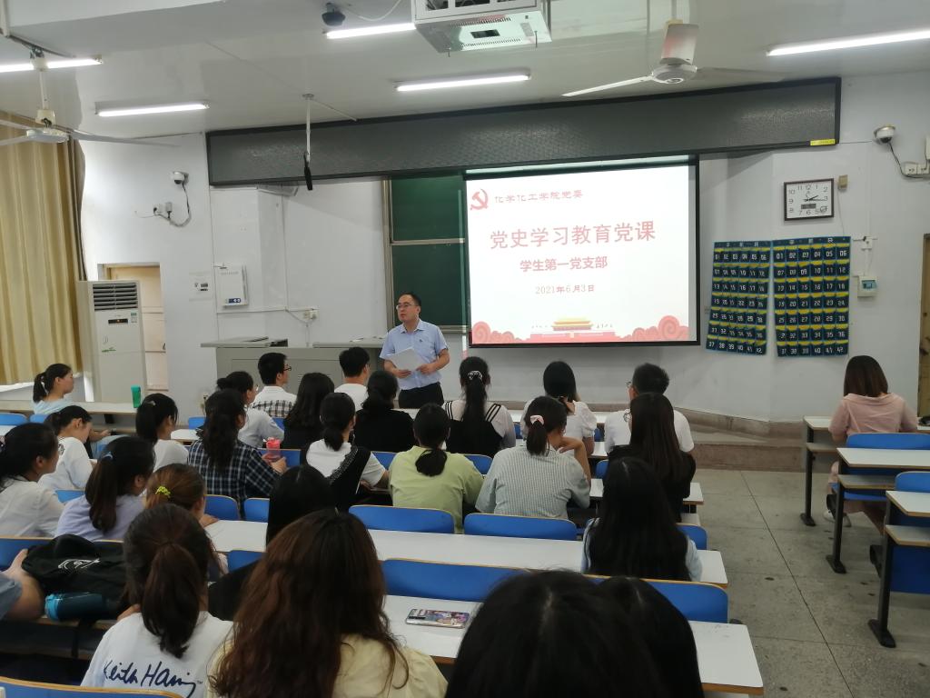 为庆祝中国共产党建党100周年,深入推进党史学习教育,6月3日,WilliamHill中文官网员工第1党支部在教四T1教师进行党史学习教育主题党课。公司员工第一党支部书记冷向宇以《习近平教育强国思想》为题,为员工党员开讲党史学习教育专题党课。