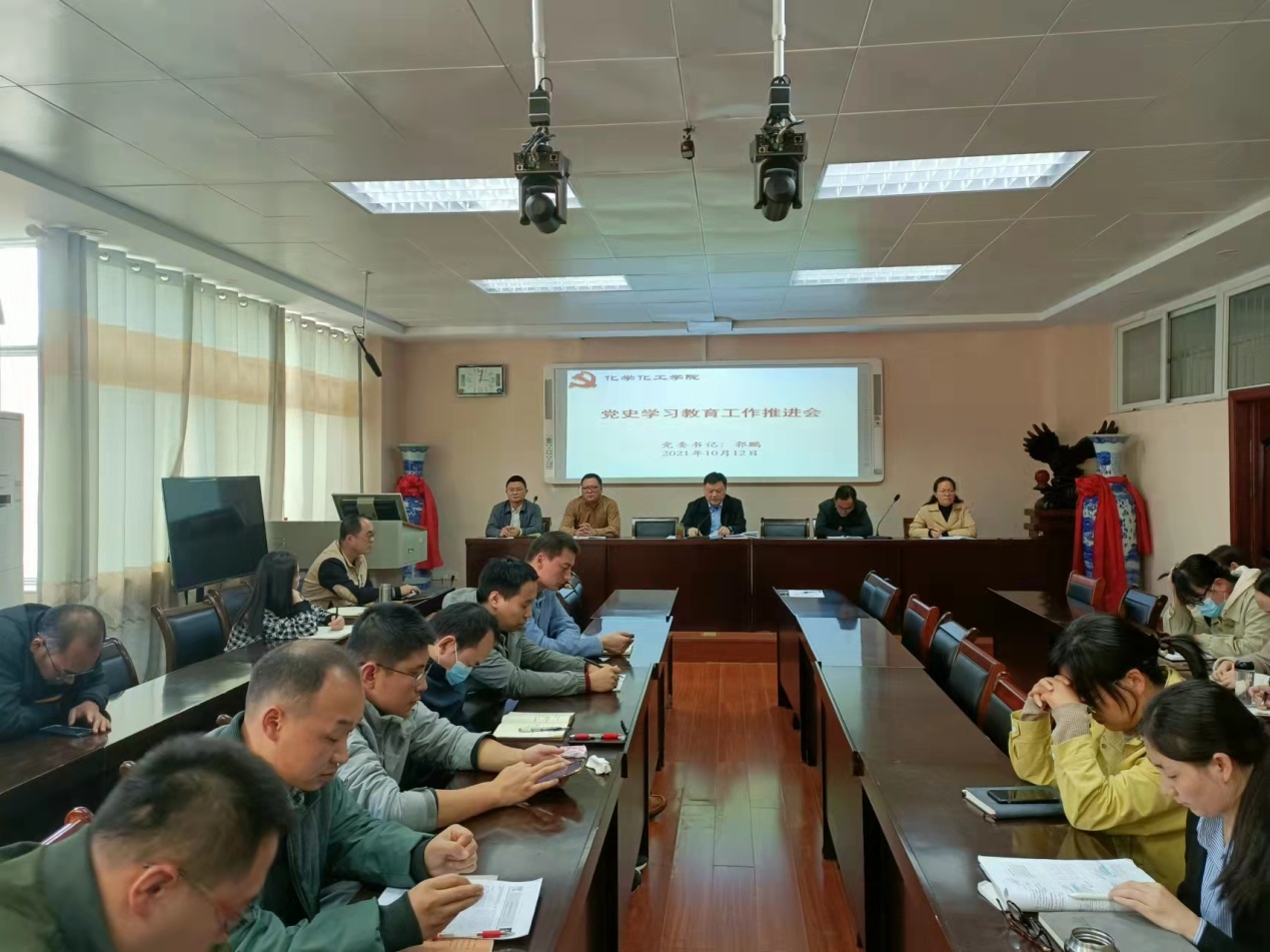 10月12日下午,公司在化学实验楼407会议室召开党史学习教育工作专题推进会,分党委委员、专职组织员、各支部书记参加会议。会议由公司党委书记郭鹏主持。