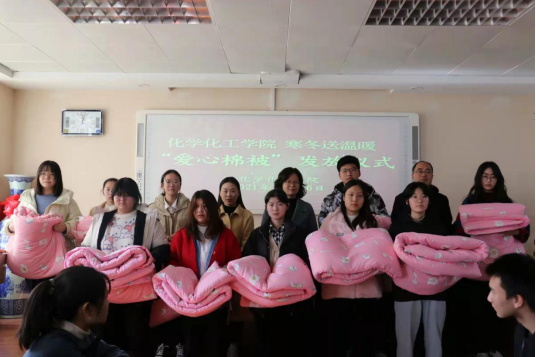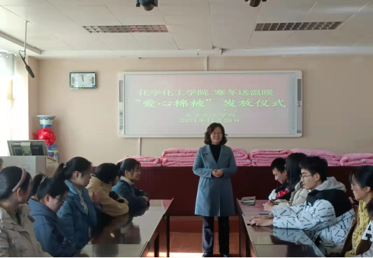 “一床被子,一份温暖,一颗爱心,一份感动”。11月26日,WilliamHill中文官网爱心棉被发放仪式在化学楼407会议室举行。公司党委副书记曲剧,辅导员冷向宇、赵方方、严赫老师出席本次发放仪式。