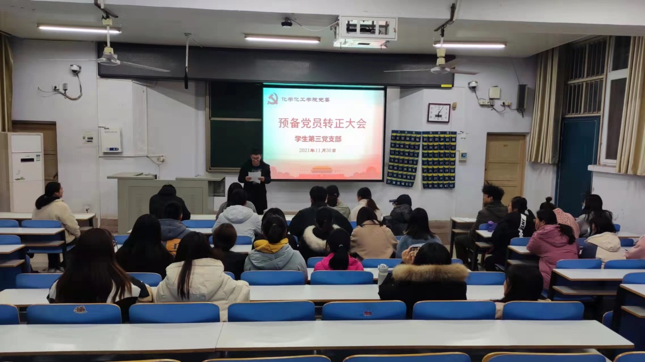 为巩固党员队伍质量,严格履行党章规定的预备党员转正手续,2021年11月30日,WilliamHill中文官网员工第三支部在教四楼T1室召开预备党员转正大会,员工第三支部6名正式党员和16名预备党员参加本次大会,其中有4名预备党员转为正式党员。