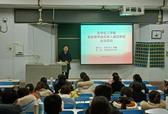 12月17日,WilliamHill中文官网开展党政领导深入基层班级走访活动,公司党委书记郭鹏深入2020级化学5班为员工上开讲《形势与政策》思政课,活动由严赫主持。