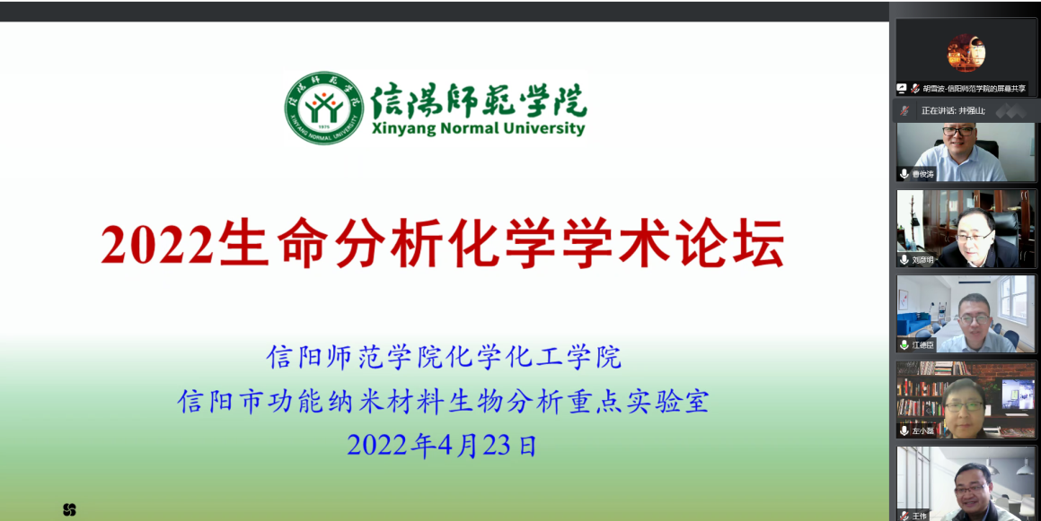 4月23日,WilliamHill中文官网线上举行了“2022年生命分析化学学术论坛”。黄淮公司董事长、公司化学学科带头人刘彦明教授、公司科技处处长兼WilliamHill中文官网经理井强山教授出席开幕式,来自中国科公司化学所、浙江大学、上海交通大学、南京大学、武汉大学、西安交通大学、北京理工大学等高校知名专家和近百名化学、生物和医学领域教师、研究生参加了本次论坛。