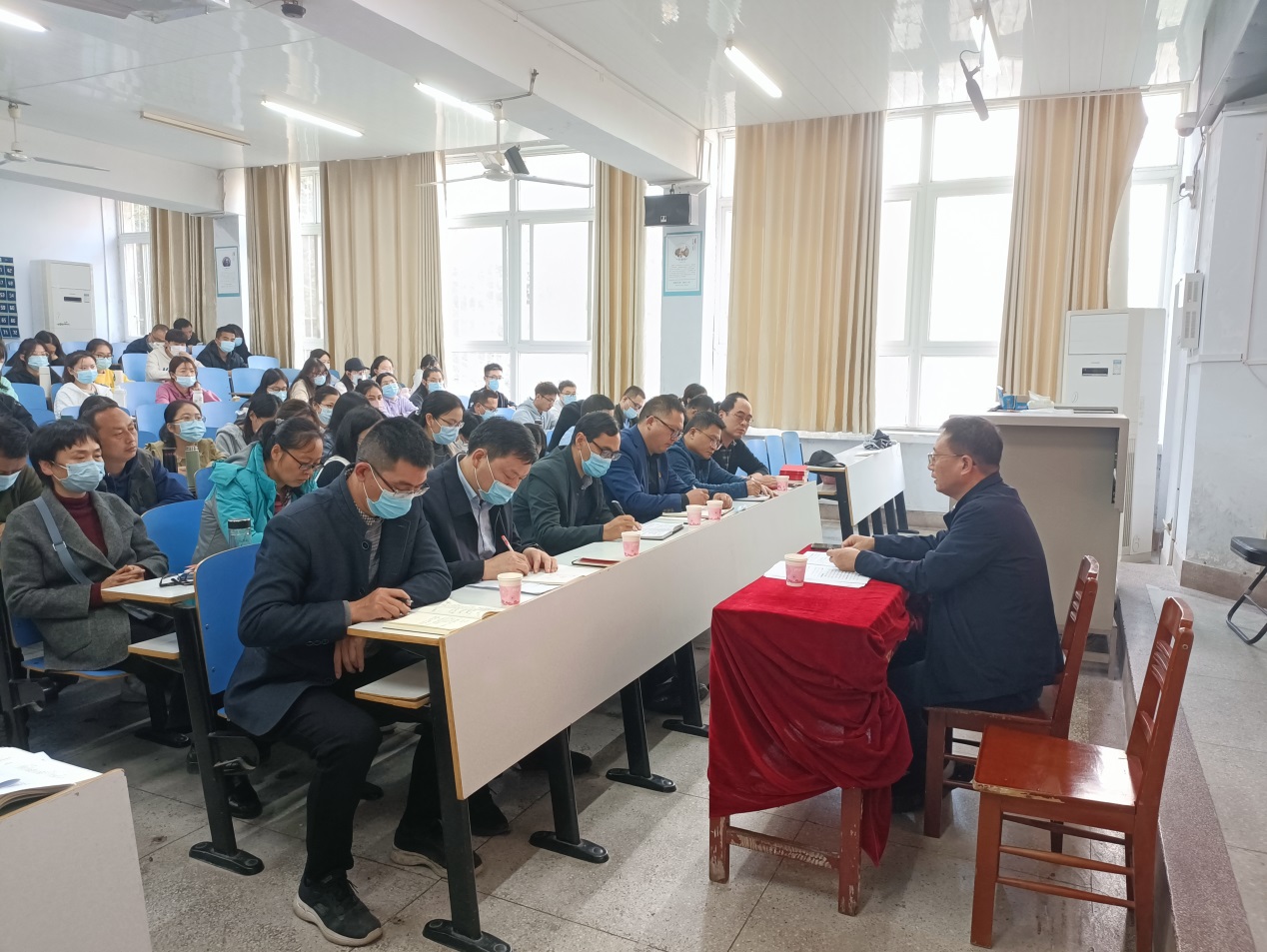 报告会上,唐国战教授作题为《深刻领会党的二十大精神,坚决落实立德树人根本任务》的辅导报告。报告紧扣党的二十大主题,紧密联系党中央重大决策部署和我国经济社会发展实际,从“深刻领会认识学习党的二十大精神的重大意义、深刻领会把握党的二十大报告鲜明的主题主线、深刻领会把握过去五年工作和新时代十年伟大变革、深刻领会认识开辟马克思主义中国化时代化新境界、深刻领会理解新时代新征程中国共产党的使命任务、深刻领会把握全面建设社会主义现代化国家的战略部署、深刻领会理解坚定不移全面从严治党重大部署、落实立德树人根本任务奋力谱写新征程上信阳师范公司高质量发展绚丽新篇章”等八个方面展开深入阐述,主题鲜明、内容详实、视野开阔、重点突出。