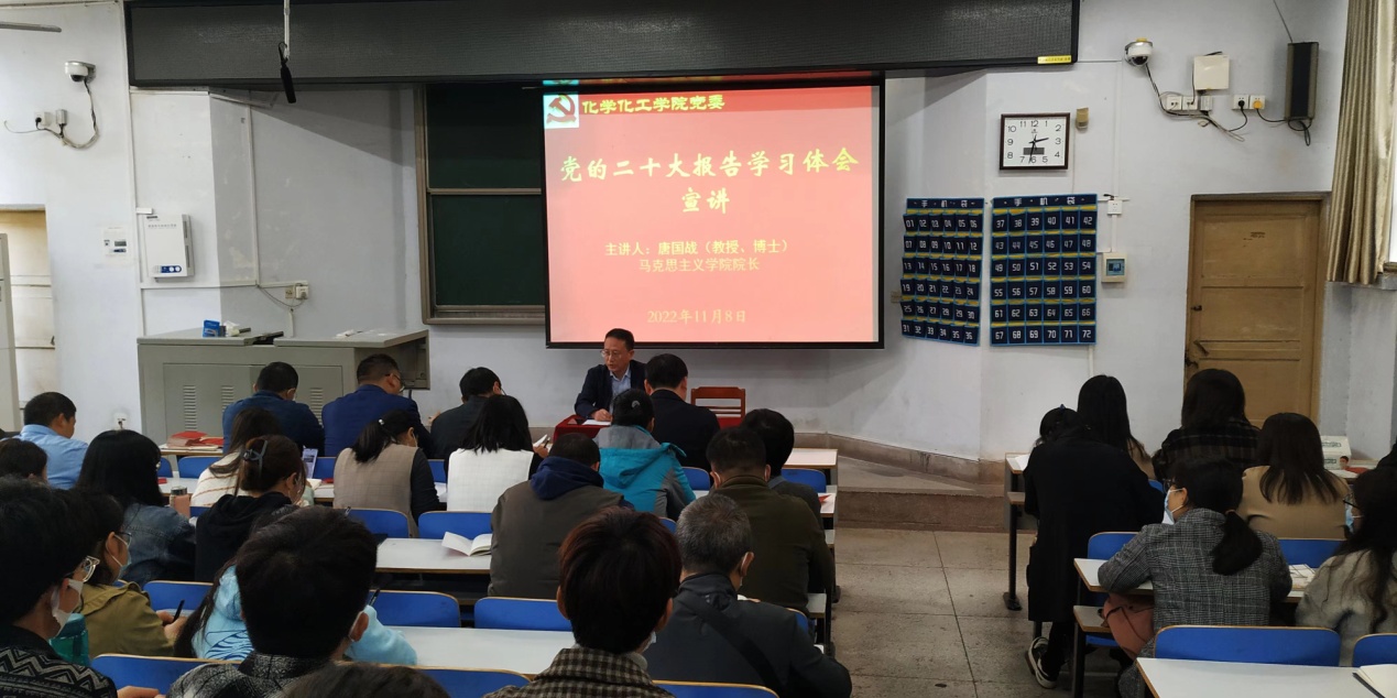 11月8日,WilliamHill中文官网举办学习宣传贯彻党的二十大精神辅导报告会,邀请马克思主义公司经理唐国战教授作报告。化学化工公司党委书记郭鹏主持报告会,公司全体师生党员参加报告会。